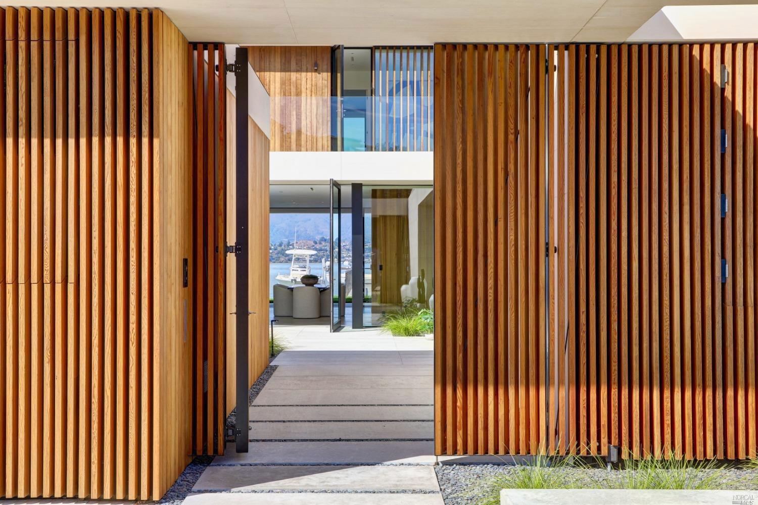 Designed by the incomparable architectural firm of Butler Armsden, this just completed waterfront contemporary masterpiece seamlessly integrates organic design elements with tall walls of movable glass for a flawless indoor/outdoor residential experience. Soaring scale and all day, light grace the 4 bedroom, 4.5 bath residence. The heart of the house is a dramatic great room that opens directly to the exterior grounds and entertaining spaces. No expense was spared in the entitlement, build out and design of this unprecedented project on Belvedere's coveted West Shore Avenue. GREAT floorplan with 3 bedrooms, including the primary, on the upper level. The 4th bedroom, ideal for guests or in laws, is ideally located on the main level for optimal one level living. State of the art technology was integrated throughout the residence. The outstanding grounds offer a myriad of entertaining options including a large entry court with beautiful stone application, large rear patio for al fresco dining and lounging, elevated metal hot tub, sweeping level lawn, & new state of the art dock with boat lift. Ideal site placement for optimization of privacy and quiet. Amazing technology in both the systems & design. West facing for all day sun. One block to the famed Tiburon bike path!