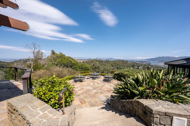 This incomparable estate offers the new owner/s a singular opportunity to acquire what is arguably the most desirable property in Mill Valley. The +-7,545 square foot compound offers a 6 bedroom, 4.5 bathroom, three story main residence in addition to a one level, detached 1 bedroom, 1 bathroom guest house. Completed as a ground up/new build approximately 23 years ago, the vision for the home was largely influenced by Frank Lloyd Wright with the seamless blending of Arts and Craft’s influenced Craftsman style and timeless Asian influence throughout. The extensive use of rich Honduran Mahogany, curved walls, soaring scale, and a glass domed ceiling has created a singular residential experience. The home is perfectly site placed on +-1.62 private and quiet acres to take advantage of “top of the world” views that extend from the San Francisco Bay to the Oakland Bay Bridge to downtown San Francisco to the extensive ridge line views in Mill Valley. Almost every single room in the main house and guest house enjoy these expansive views with a heightened experience at night when the city and bridge lights are invited into the home. Seamless indoor/outdoor living is enjoyed from the home’s living rooms to the resort like grounds which include a beautifully designed in-ground pool, spa, huge terrace for entertaining and al fresco dining, mature trees and plantings, Old Growth Oaks, stone walls, and hiking trails accessible right outside your front door. The residence is conveniently located just halfway down E. Blithedale in a +-3 minute drive to town. One of only four homes behind the Via Vandyke gate, 1 Via Vandyke offers a very rare opportunity for either a full-time residence or weekend home for San Francisco residents looking to have respite from fog and wind. Located in the highly desirable Mill Valley School District.