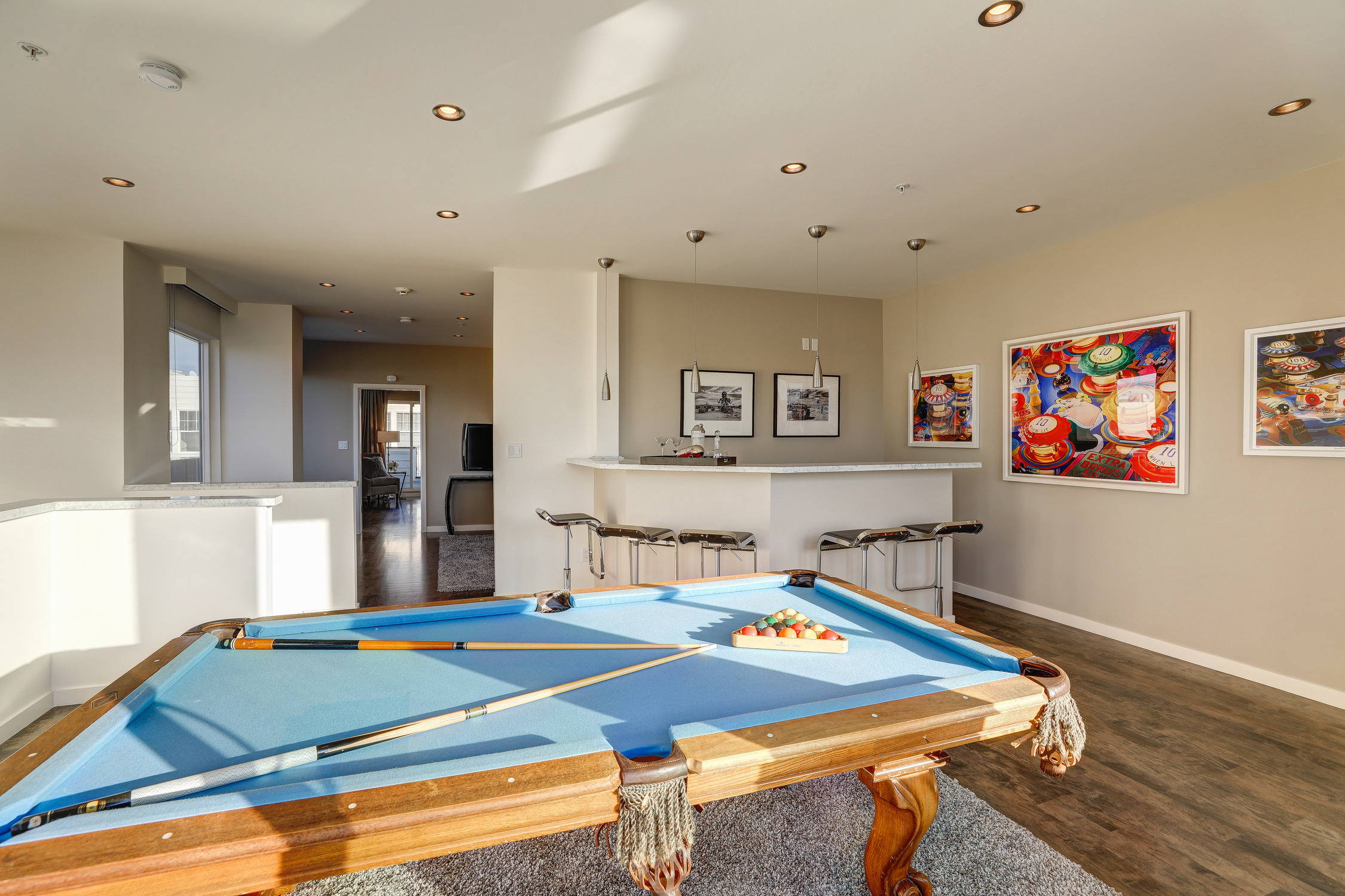 - Ideal for hosting parties and events, the playroom/media room offers high ceilings and a full bar with beverage refrigerator, sink, freezer, and built-ins. There are glass doors that open directly to a slate terrace that offer stunning views of the Palace of Fine Arts and Golden Gate Bridge.