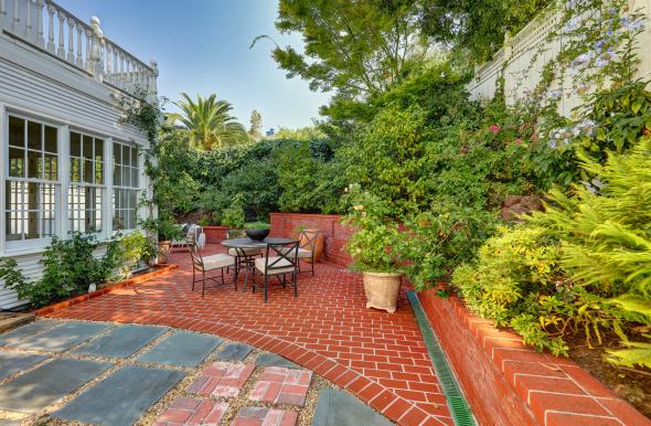 - Adjacent family room offers large open entertaining space with glass doors that open to the rear yard and gardens