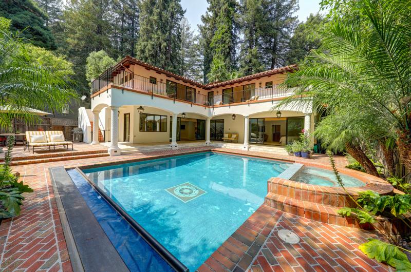 A rare offering presents itself in the unveiling of one of Larkspur’s most distinctive and revered residences. Reminiscent of the fine architecture of Santa Barbara, the 4 bedroom, 4.5 bathroom residence blends great scale with high ceilings, tall glass doors, and all day light with classic Santa Barbara design. Timeless tile flooring, rough-hewn wood beams, and classic tile and stone is seamlessly blended in a classic, timeless design. Indoor/outdoor living is enjoyed in the +-3225 square foot residence that offers one level living if the master is needed on the main level. The heart of the home is a grand scale great room that opens directly to the exterior living spaces. Perfectly site placed on a level lot, the residence offers a vacation at home experience with in-ground pool, elevated spa, tall, graceful Palm trees, multiple level terraces for outdoor dining and entertaining, level lawn, and direct access to Larkspur’s famed hiking trails. South facing with all day sun, the residence is perfectly site placed and offers complete privacy and quiet. Located in the coveted flats of Larkspur, the residence is located just blocks from downtown Larkspur’s many famed shops, world class restaurants, and the Larkspur bike path.