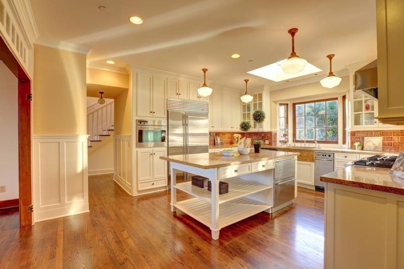 - Fabulous all white chef’s kitchen includes high-end stainless appliances including a large Sub Zero refrigerator, 6 burner Viking range with grille, separate Miele oven, pantry, ample storage, a large center island and a skylight. The counters are Italian limestone with a vintage tile backsplash.