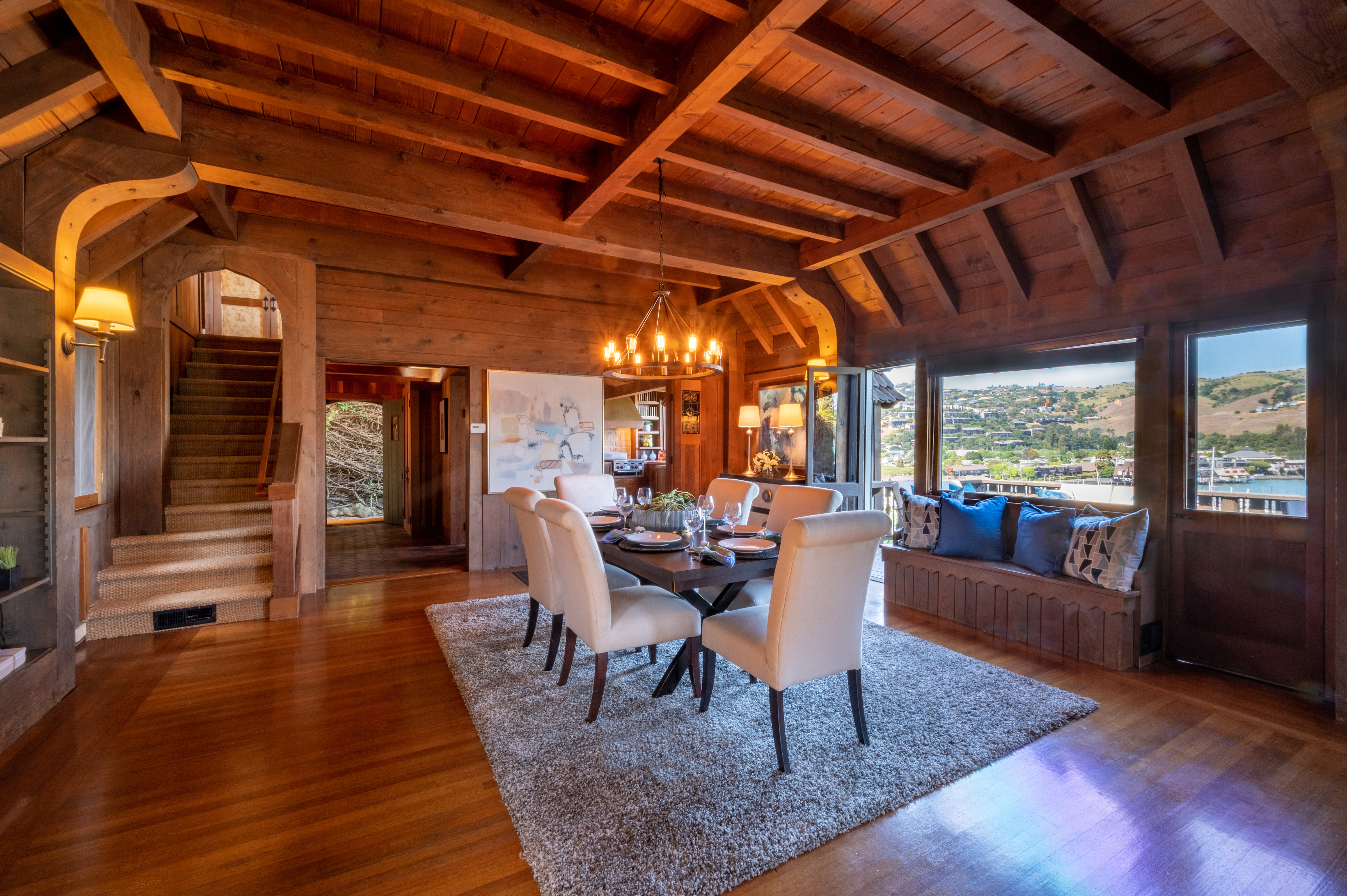 - Ideal for entertaining and hosting holiday dinners, the grand scale open dining room offers a built-in window seat with storage, extensive built-ins, and glass doors that open to a huge deck.