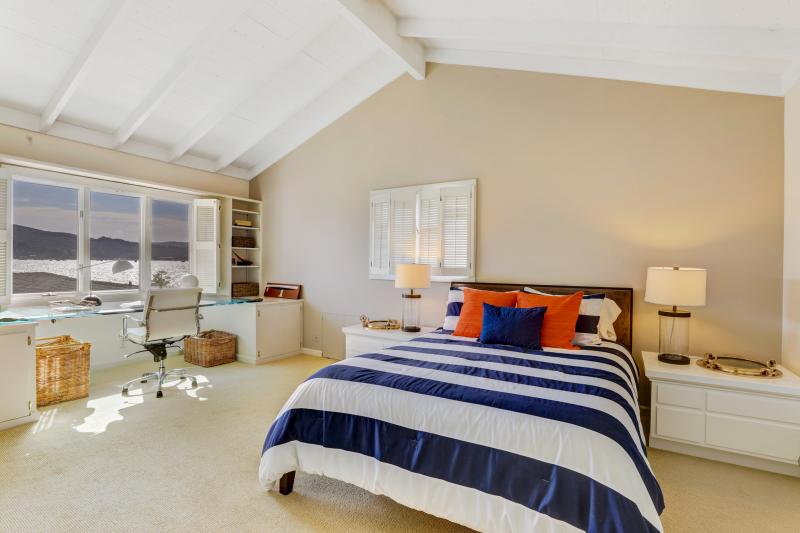 - Large en-suite bedroom offers high ceilings, custom built-ins, and lovely water/Sausalito views